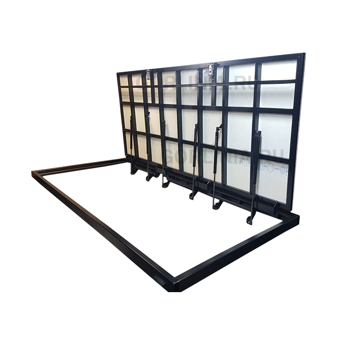 - базовая модель с двумя створками 1160пх685 на амортизаторах (варианты расположения шарниров: по одной одной стороне 2400, комбинированный - по длинной и короткой);