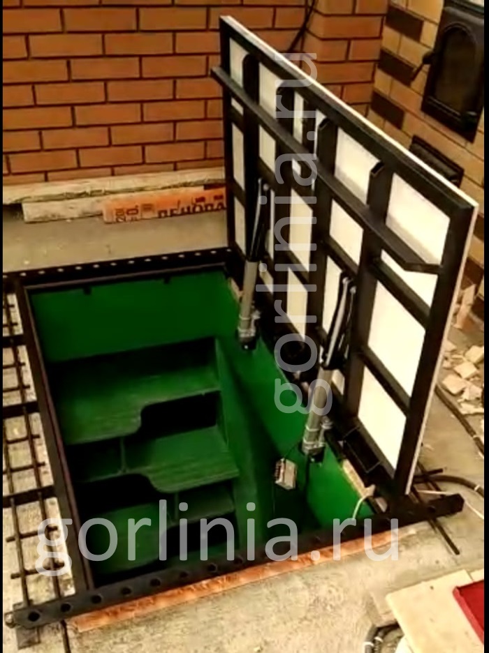 Механизм в любой момент открывается в ручном режиме при этом не скалывая, не ломая плитку, которой облицовывается поверхность. Для этого Вы ввинчиваете резьбовые Т-образные ручки и поднимаете створку на шарнирах до полной разгрузки обесточенных подъемников. В случае если Вы открыли люк вручную и поставили на стопор актуаторы, закройте его также вручную, а потом начинайте пользоваться мотором.