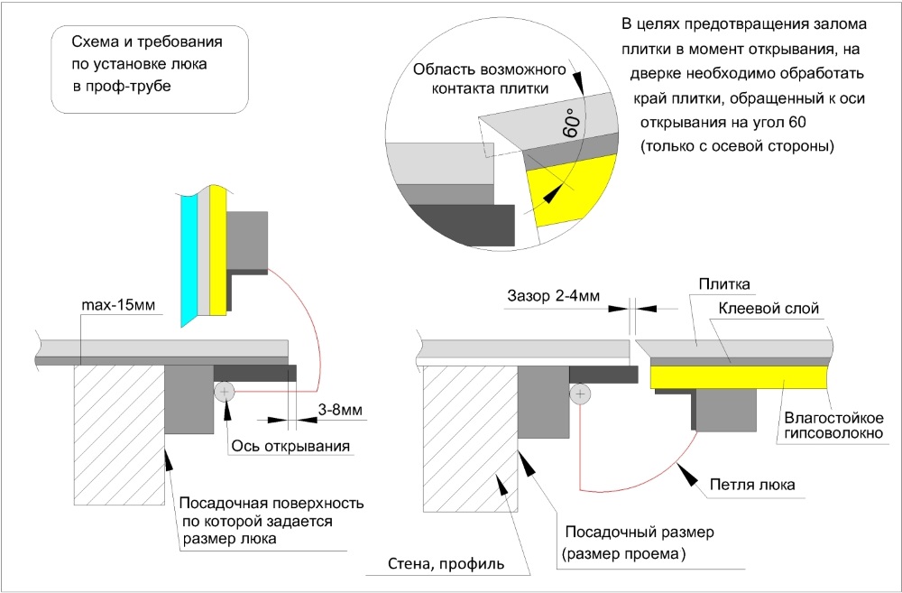 Дверь рассчитывается под нагрузку плитки 110х60 с клеевым слоем.