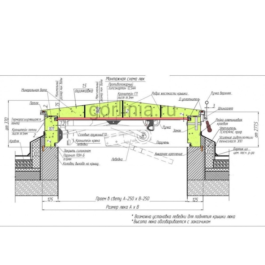 Подготовка под класс огнестойкости люков на кровлю 2-го типа EI60: