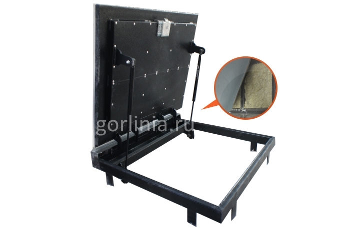 Рама без наличников выставляется в существующем отверстии 97*60 см с допусками, крепится в перекрытии через вертикальные пластины даже когда Ваш ремонт закончен и пол выложен керамогранитом или настелена ламинированная доска.